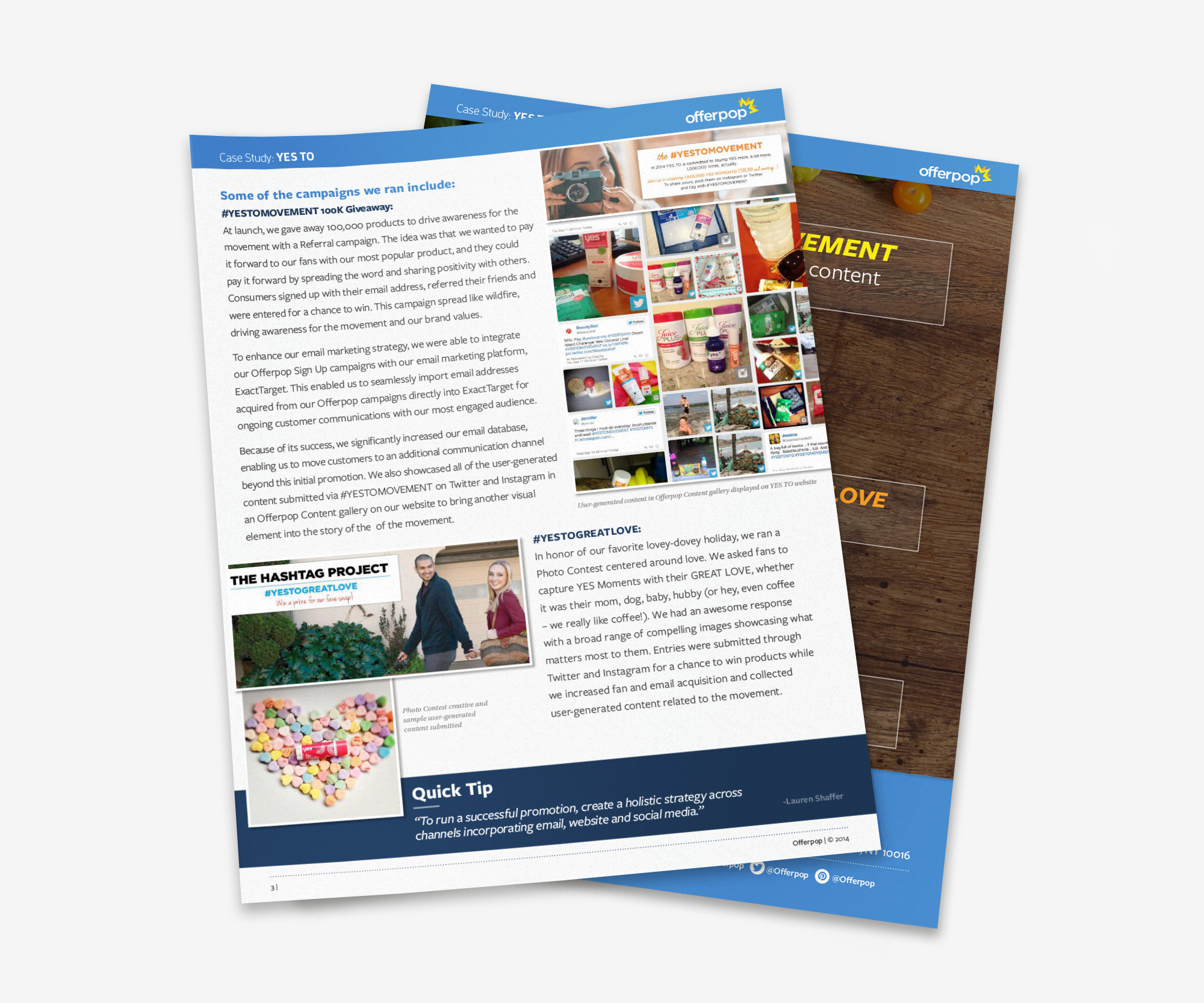 Developed Offerpop’s first corporate brand guide and creative direction for marketing materials such as case studies and product sheets